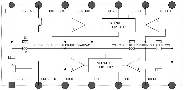 IC Định thời 556 thực chất là hai IC 555 trong cùng một IC như sơ đồ khối dưới đây: