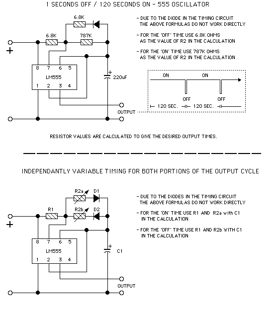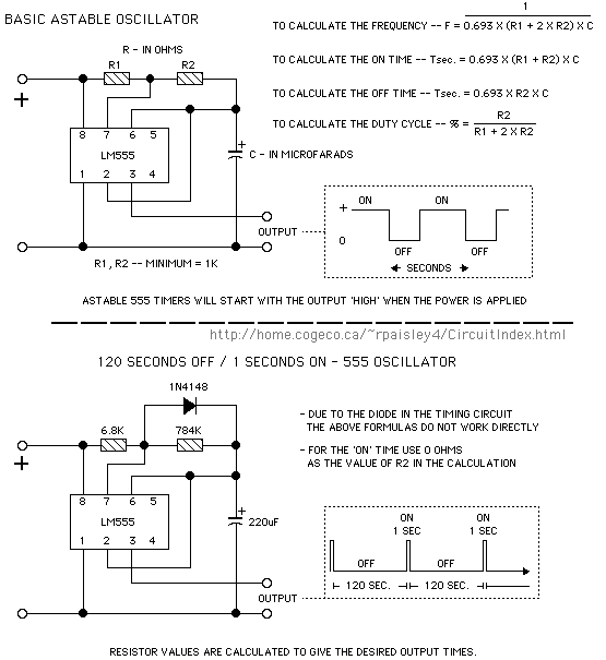 Trên đây là hai mạch phát xung đa hài, tùy thuộc vào các giá trị của R và C trong mạch mà chiều dài của các Xung T(on) và T(off) khác nhau.