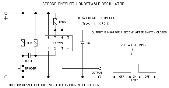 Tương tự, tham khảo thêm các mạch dưới đây: Và dưới đây là mạch tạo 1 xung có độ dài đúng bằng 1 giây đồng hồ: