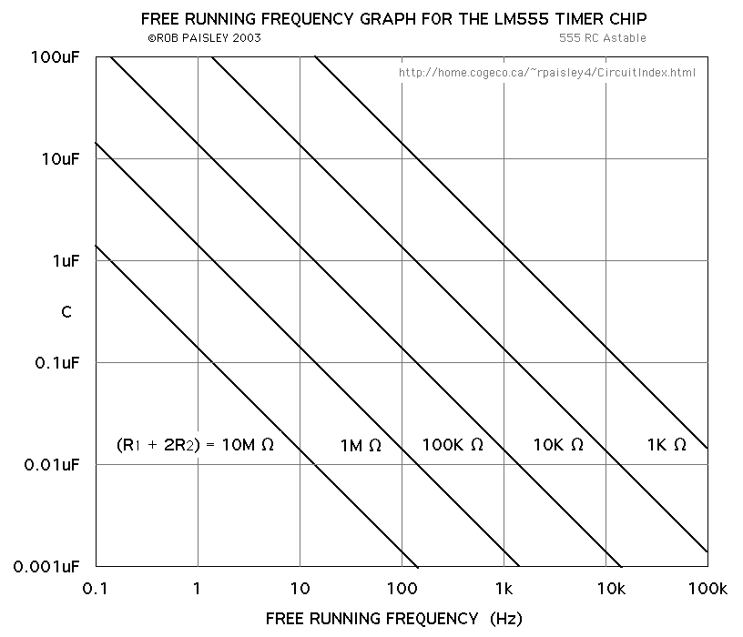 Thời gian kéo dài xung nói trên có thể được thay đổi và điều chỉnh thông qua bảng tham số các Giá trị Điện trở R và Tụ điện C như dưới đây: